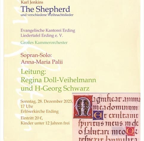 Am letzten Samstag haben wir in der evangelischen Auferstehungskirche in Altenerding zusammen mit der Kantorei Erding für unsere große Aufführung des Magnificats von John Rutter geprobt. Das Konzert findet am 28.12.2025 um 17 Uhr in der Evangelischen Erlöserkirche in Erding-Klettham statt. Schon jetzt möchten wir Sie darauf aufmerksam machen und Sie herzlich dazu einladen, sich…